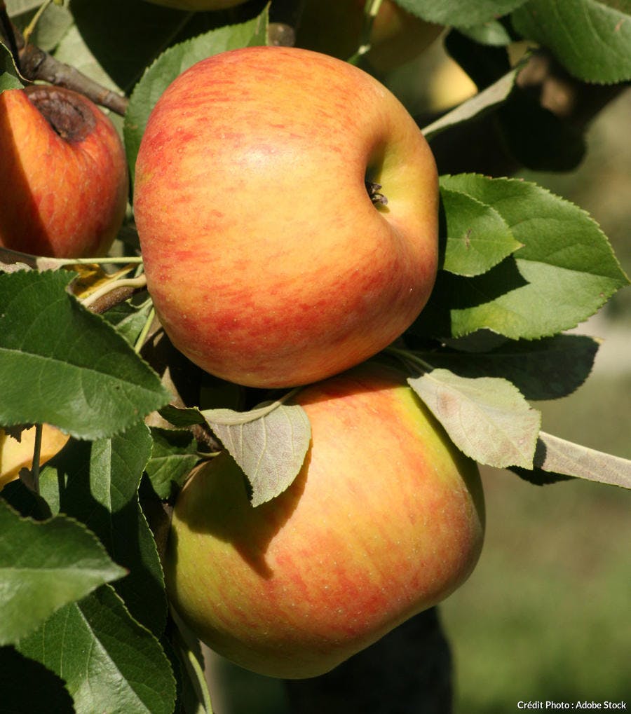 Big, juicy and very sweet apples, streaked with orange-red, ideal for well-drained soil and full sun exposure.