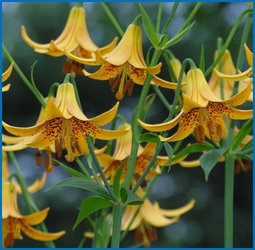 Admire the yellow and orange blooming of the Canadian lily, ideal for cool soils in full sun or partial shade.