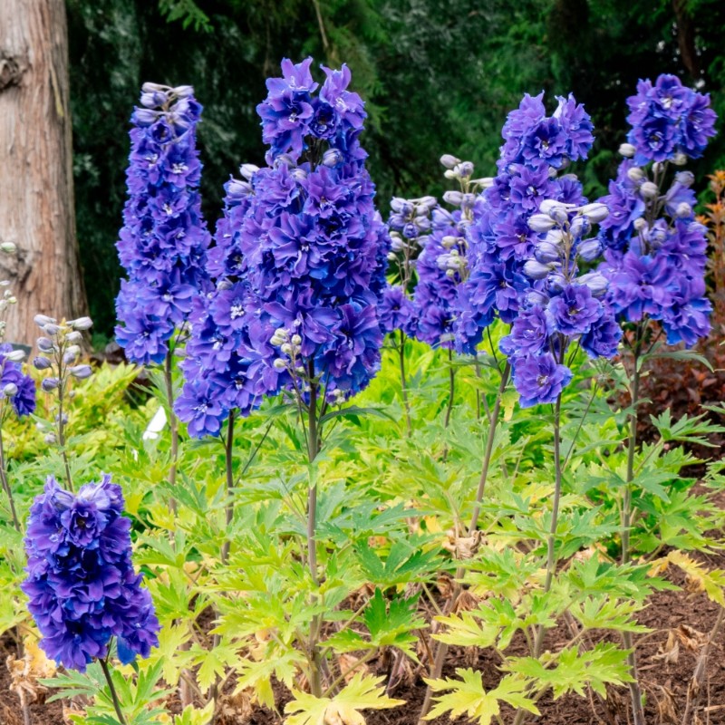 Tall sturdy stems bearing long spikes of electric blue flowers.