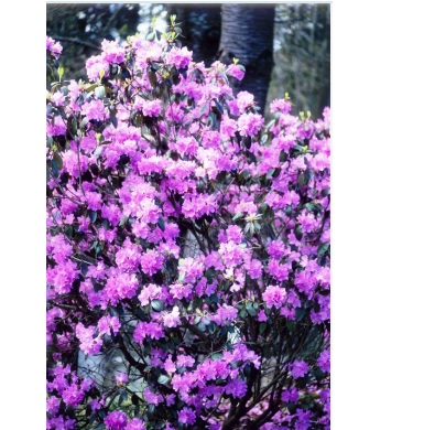 This rustic and compact rhododendron offers superb lavender and evergreen, fragrant foliage.