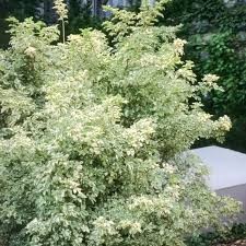 Feuillage vert brillant panaché de crème et fruits noirs, cet arbuste rustique s’épanouit au soleil ou à l’ombre.