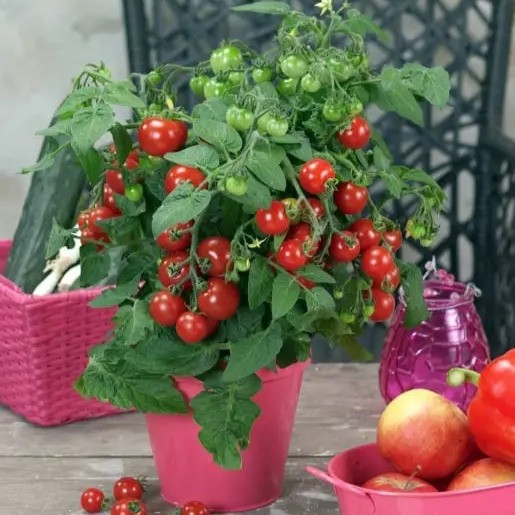 Tomate de table qui s’adapte aux pots choisis. Fruit de 25 à 30 g. Maturité des fruits à 55 jours.