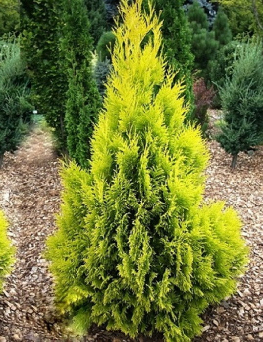 Ce conifère doré au feuillage éclatant illumine jardins et terrasses, idéal en isolé ou en haie dans un sol bien drainé.