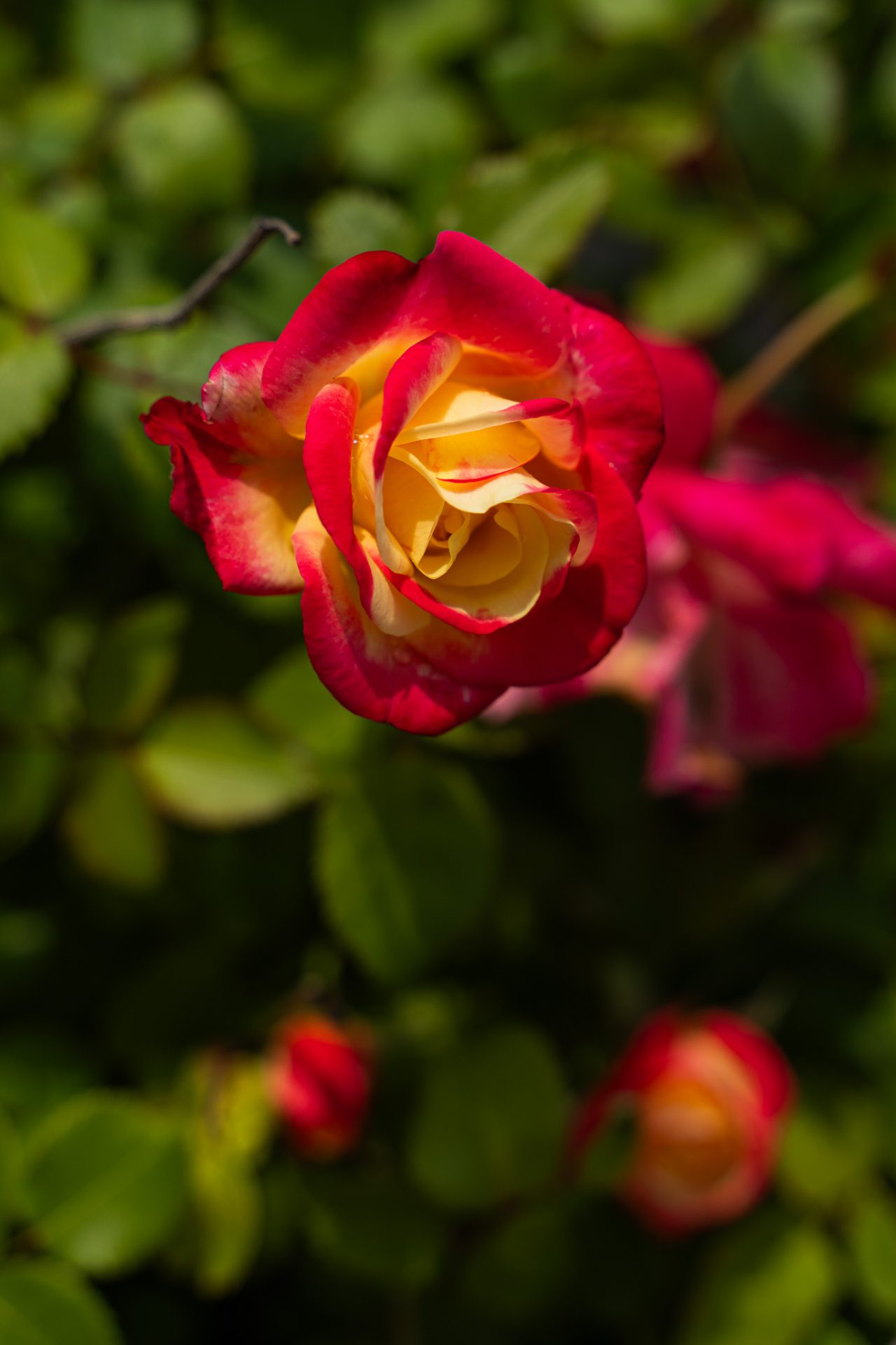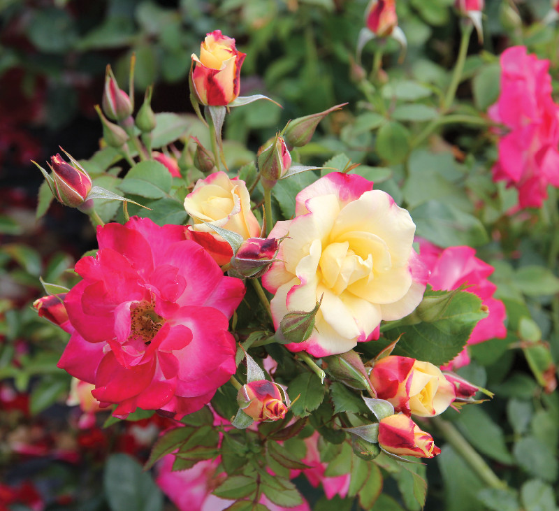Ce rosier rustique aux fleurs parfumées change de couleur, passant du jaune au rose tout au long de l’été.