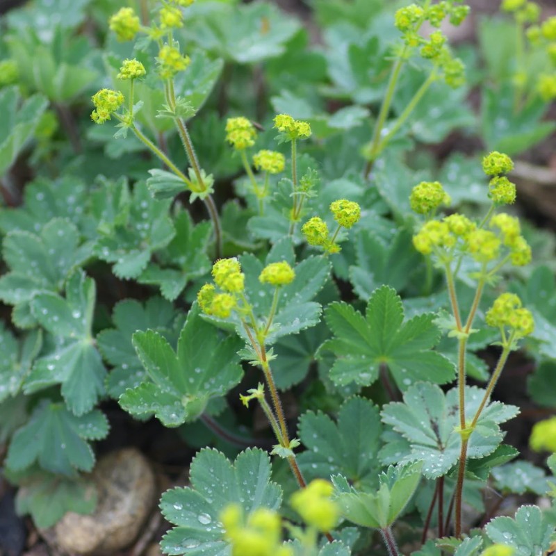 Ce manteau de dame nain offre un feuillage vert festonné et des fleurs chartreuses, idéal pour rocailles et bordures.