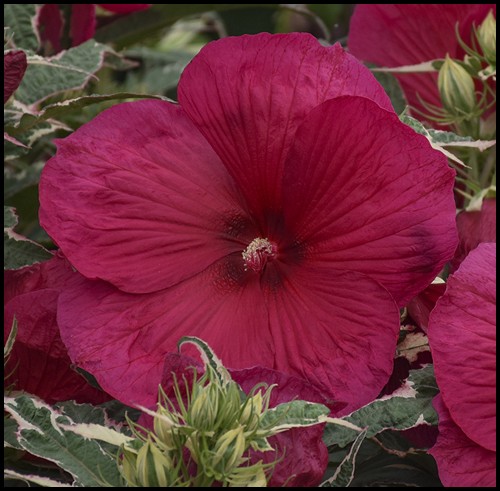 Découvrez une plante vigoureuse aux grandes fleurs magenta et au feuillage panaché, idéale pour attirer papillons et abeilles.